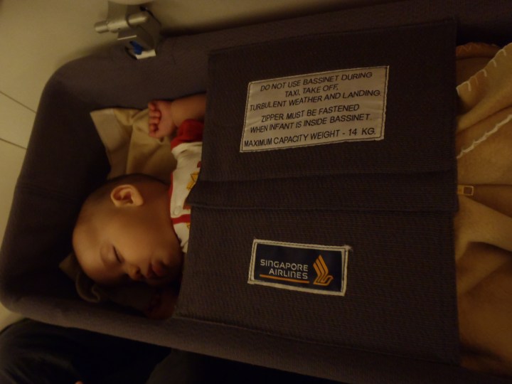 In 2011, he fit snugly into the bassinet provided in the plane. Now that he doubled his weight and size since then, I don’t think he’d be comfortable at all in it. So he will have to be on my lap (because I was too cheap to buy him his own seat in the plane, hehehe) all the time.